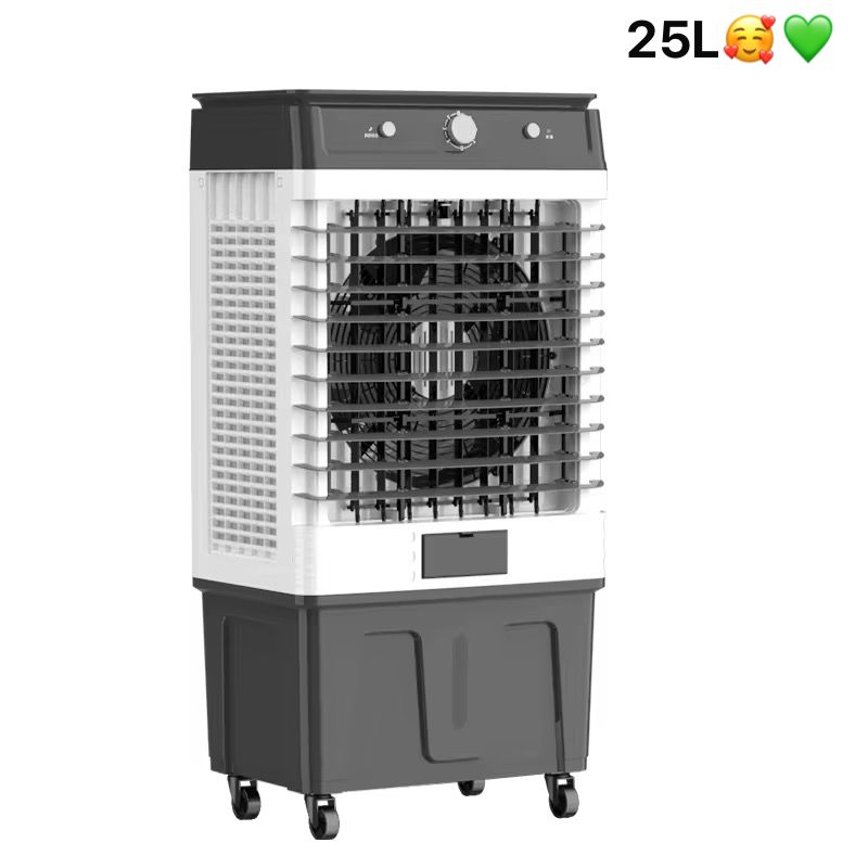 Doté d’un grand réservoir de 25L, il permet une autonomie prolongée sans avoir besoin de remplir fréquemment l’eau. Cette capacité garantit un rafraîchissement continu pendant plusieurs heures, parfait pour une utilisation quotidienne.
