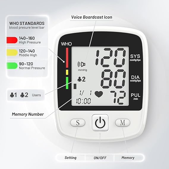 Découvrez le tensiomètre électronique de poignet avec fonction vocale, un appareil moderne et pratique conçu pour surveiller votre tension artérielle à domicile. Grâce à son écran LCD large et clair, il affiche instantanément les résultats de vos mesures : tension systolique, tension diastolique et fréquence cardiaque. La fonction diffusion vocale claire permet une utilisation facile, même pour les personnes âgées ou ayant des problèmes de vue.
