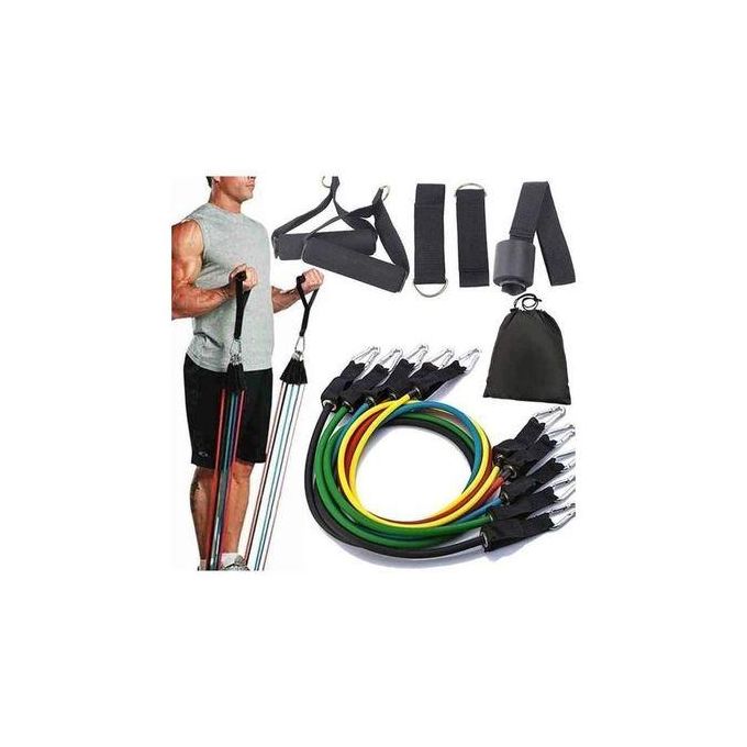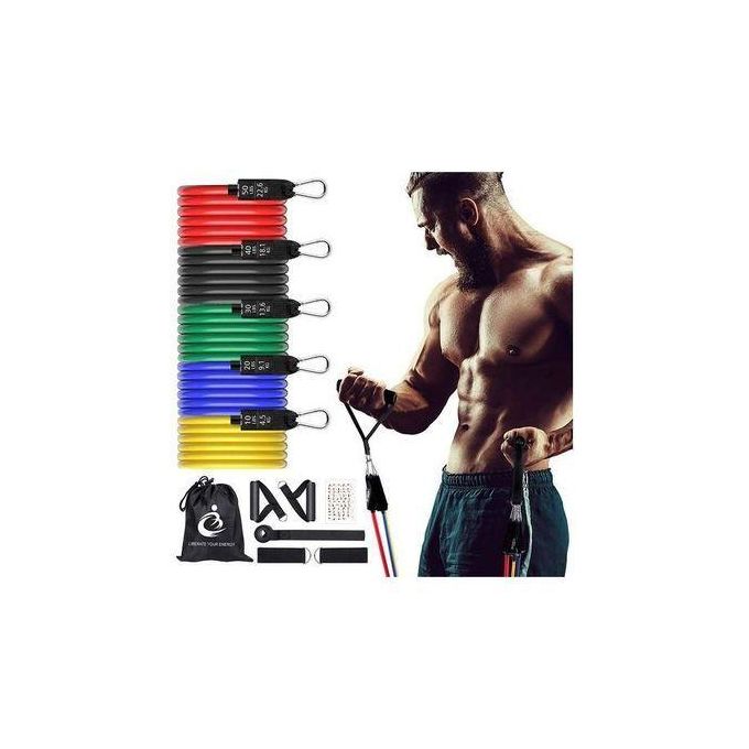 Bandes de résistance au latex de qualité supérieure de 11 pièces avec poignées Bandes d'entraînement de fitness pour l'entraînement en force. 11 ensemble de bandes de résistance. Comprend 5 bandes de couleurs différentes: Noir (35 lb), Bleu (30 lb), Rouge (20 lb), Vert (15 lb), Jaune (10 lb), 2 poignées rembourrées, 1 ancrage de porte, 2 sangles de cheville et un Sac de transport. Les bandes de gymnastique conviennent aux hommes et aux femmes QUALITÉ SUPÉRIEURE AMÉLIORÉE. Les bandes d'exercice en latex robustes, l'ancrage de porte en nylon, les poignées et les sangles de cheville ne se déforment pas ni ne se cassent même sous une forte tension. Les mousquetons sont faciles à détacher des bandes de résistance et faciles à remplacer. Bandes de résistance portable. Ce kit de cordons de résistance est livré avec une pochette en tissu. La portabilité et la polyvalence des bandes les rendent idéales pour l'entraînement en voyage. Que vous soyez débutant ou expert, ces bandes de résistance sont faites pour vous. La variété de résistances et le système multi-clips vous permettent d'ajuster l'intensité de vos entraînements de bandes de résistance en fonction de vos objectifs personnels.